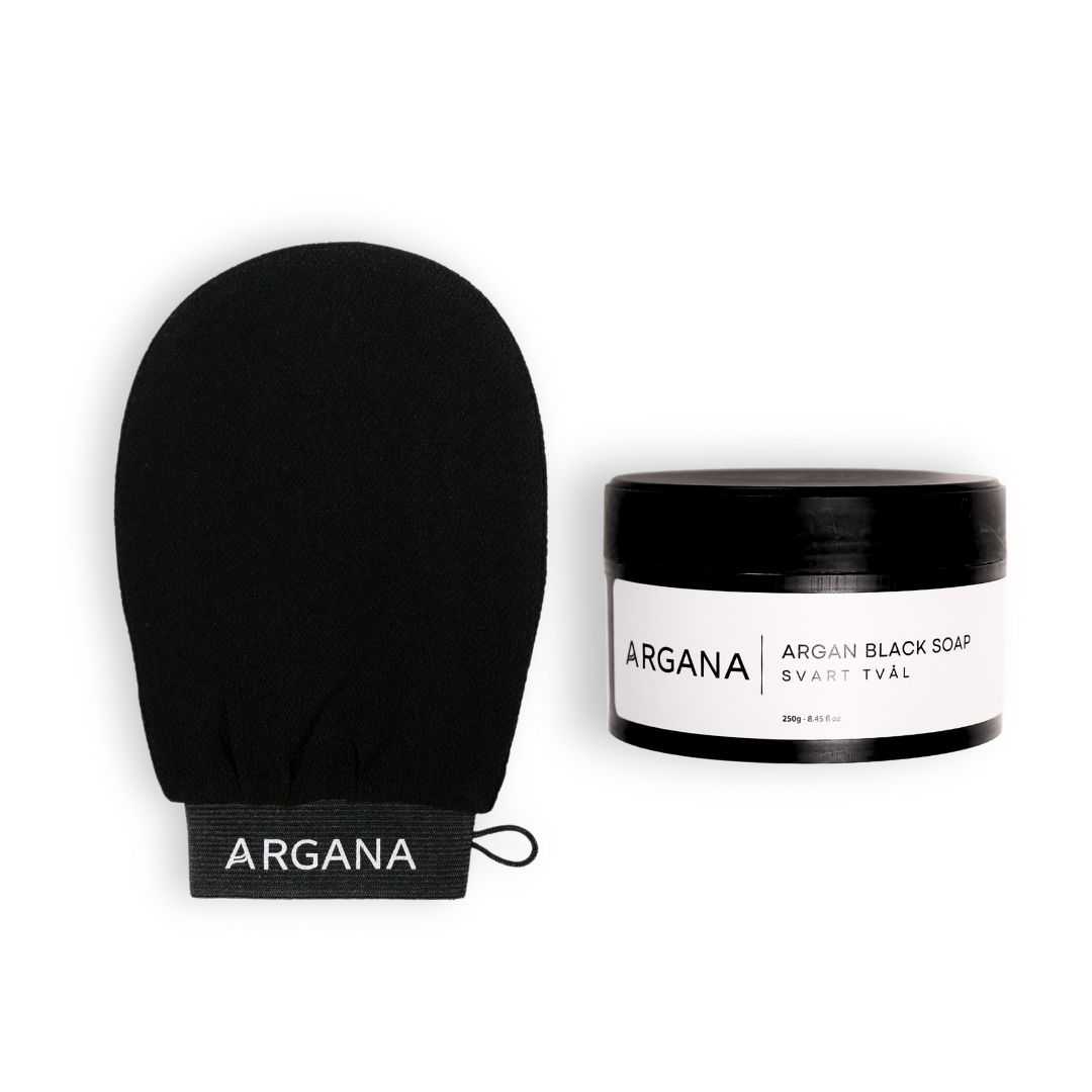 Ge din hud en extra ren och len känsla med vårt Black Soap & Skrubbhandske-kit. Den naturliga och vårdande Black Soap rengör huden skonsamt samtidigt som närande arganolja och olivolja mjukgör och återfuktar. Tillsammans med den effektiva skrubbhandsken, som är 100 % viscos, avlägsnar du varsamt döda hudceller och stimulerar blodcirkulationen för en mjukare och mer strålande hud. Eukalyptusoljans friska doft ger en uppiggande och frisk känsla vid varje användning. Detta kit är perfekt för dig som vill ha en naturlig peeling och rengöring som lämnar huden ren, mjuk och återfuktad.